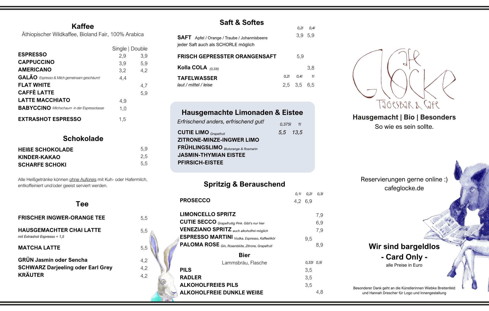 Frühstück à la Carte | Glocken – Tapas | Mittagstisch | Kaffee & Kuchen